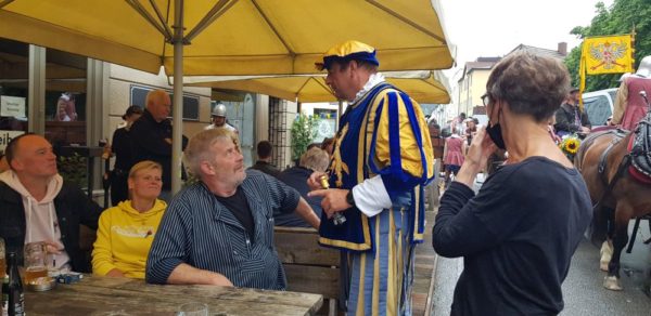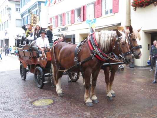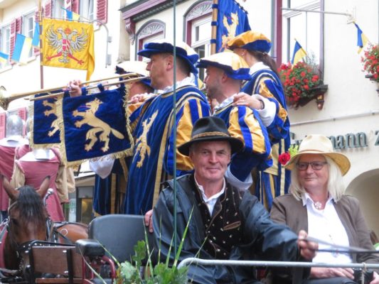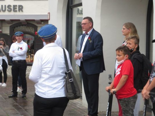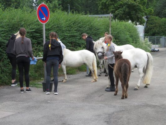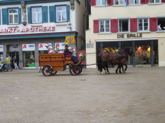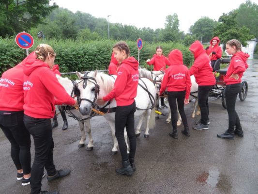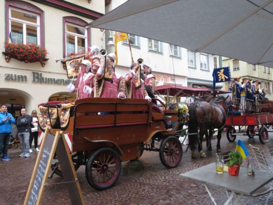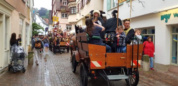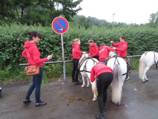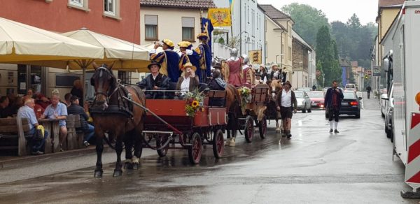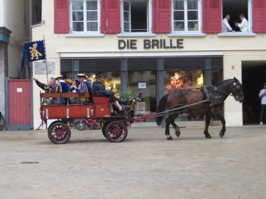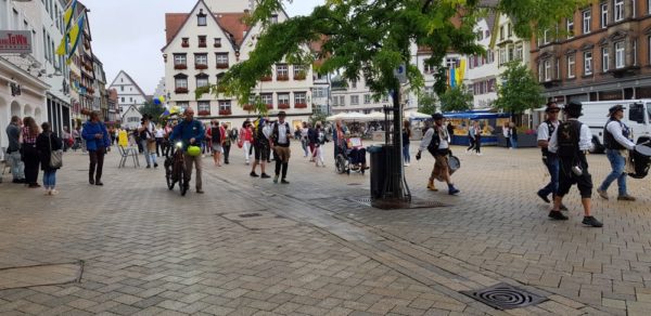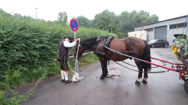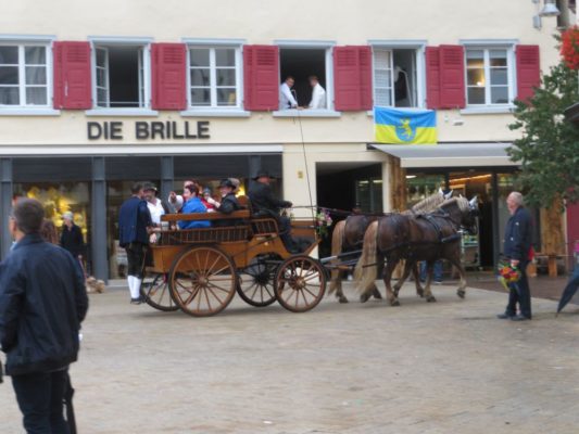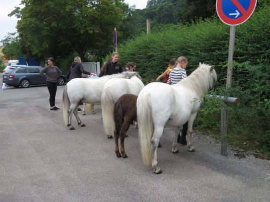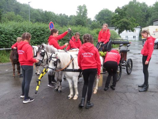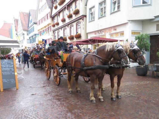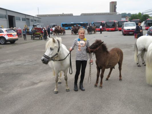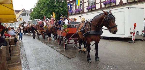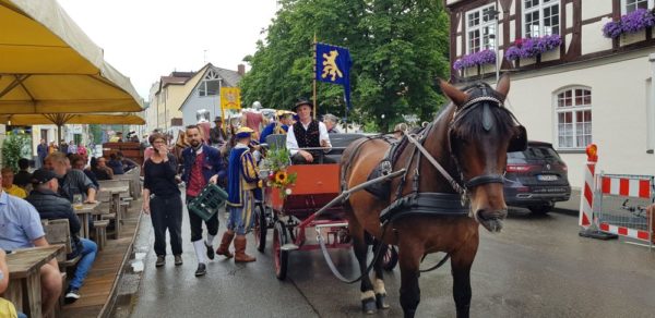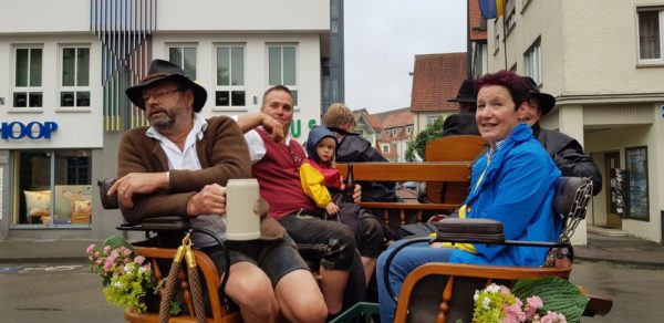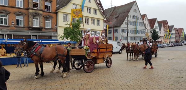 Gnug isch gnug! Die Biberacher haben eindeutig genug von ‚Pandemie‘ und ’nicht feiern dürfen‘ und bei ‚Schütza‘ hört der Spaß sowieso auf! Viele sind mittlerweile geimpft, die Inzidenzen sind niedrig und die Schützendirektion hat in Kooperation mit der Stadt ein gutes Konzept ausgearbeitet, wie die Biberacher wenigstens etwas Schützen-Feeling bekommen können – denn eines dürfte jedem klar sein, die Biberacher lassen sich ihr Schützenfest nicht nehmen! … und die Ponyfreunde mit ihren Schützenponys natürlich auch nicht. Als eine der Live-Aktionen war auch ein unangekündigter Mini-Umzug einiger Kutschen durch Biberach geplant. Die ‚großen‘ ein- und zweispännig gefahrenen Kutschen waren besetzt mit einigen Schützendirektoren und mit einer Auswahl an Fanfarenbläsern, die an den unterschiedlichsten Plätzen der Biberacher Innenstadt kleine Ständchen spielten. Auch unser Ponyteam war mit einem Vierspänner und Posthörnern vertreten, die man mal hier und mal da in der Innenstadt zu hören bekam. Unsere Ponys und ihre Fahrerin Magdalena, eine der ‚Großen‘ des Ponyteams, haben ihre nicht immer ganz einfache Aufgabe ganz super gemeistert und wurden vor allem von den Kindern begeistert bejubelt. Auch eines unserer Fohlen durfte mit und wurde natürlich besonders bestaunt.