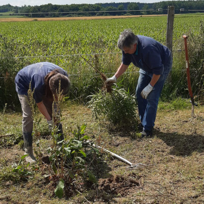 Und last but not least wurde auch auf der Weide und rund um den Reitplatz kräftig Unkraut entfernt. Die fleißige ‚Unkrautbrigade‘ war auch in letzter Zeit auf der SOKO sehr aktiv. Mit einem eigens dafür angeschafften Unkrautstecher ging es vor allem dem Sauerampfer an den Kragen.