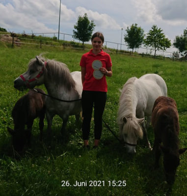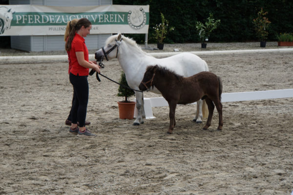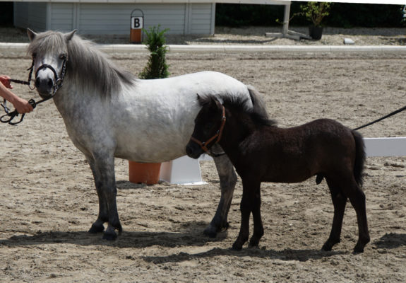 Vormittags hatten wir die Stuten mit Ihren Fohlen von der Sommerweide geholt und im Stall bei Zells gründlich geputzt und sozusagen „ausgeh-fein“ gemacht. Mit super sauberen Stuten und Fohlen machten wir uns bei bestem Wetter auf den Weg. Die Fohlenschau fand am Nachmittag statt. Beide Fohlen zeigten sich toll und konnten die Richter überzeugen, so dass beide die begehrte Fohlenprämie erhielten! Sie wurden mit der Silbermedaille ausgezeichnet. Ganz knapp verfehlten beide leider die Goldmedaille. Beide Fohlen erreichten 33 Punkte (in jeder Teilnote mindestens 8,0) und ab 34 Punkten hätte es die Goldmedaille gegeben.