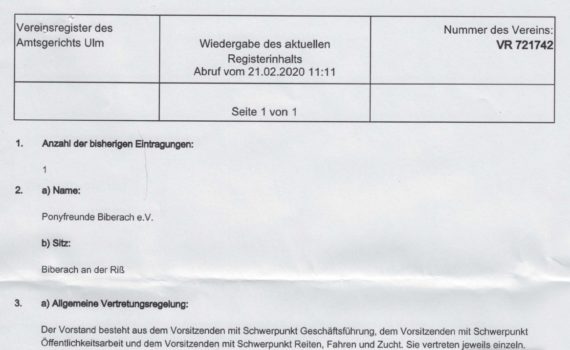 Am 3. Februar 2020 fanden sich die 13 Gründungsmitglieder ein, um über die Gründung der Ponyfreunde Biberach e. V. zu beschließen.