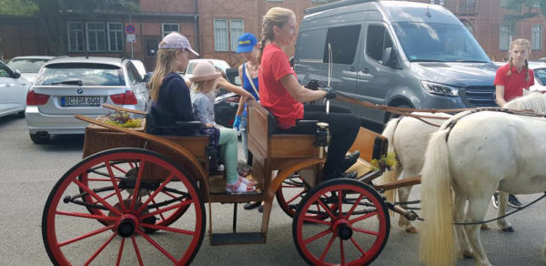Unsere Ponys heißen nicht umsonst ‚Schützenponys‘! Als uns die Schützendirektion fragte, ob wir bei Kutschfahrten des diesjährigen Schützenfestes mit dem Motto „Weniger als 2019 – mehr als in 2020“ mitmachen möchten, da sagte wir natürlich sofort zu. Die ‚Förderung von Volksbrauchtum und Kulturgut im Bereich der Ponyeinsätze im Schützenumzug‘ ist schließlich unserer zweiter Vereinszweck, gleich nach der ‚Förderung von Jugendarbeit im Bereich des Reit- und Fahrsports‘. Der dritte Vereinszweck ist die ‚Förderung des Tierschutzes bei der Haltung und im Umgang mit Ponys‘. Deshalb haben wir auch nur Fahrten für Kinder angeboten, um unsere Ponys nicht zu überlasten, und das auch nur für eine begrenzte Anzahl an Fahrten.
