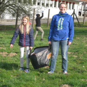 Sie haben sich zeitlich etwas versetzt getroffen und sind mit ausreichend Abstand ans Werk gegangen. Bitte beachtet auch die korrekten Abstände auf den Bildern: „Eine Ponylänge“. Nur enge Familienangehörige (jeweils Mutter und Tochter) sind einander nähergekommen um schwerere Aufgaben gemeinsam zu meistern.